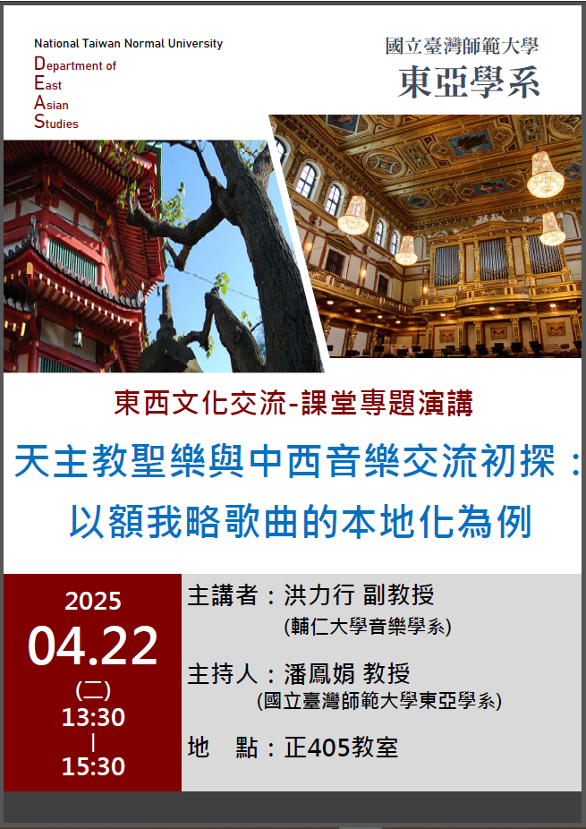 113-2「東西文化交流」專題演講---《天主教聖樂與中西音樂交流初探:以額我略歌曲的本地化為例》
