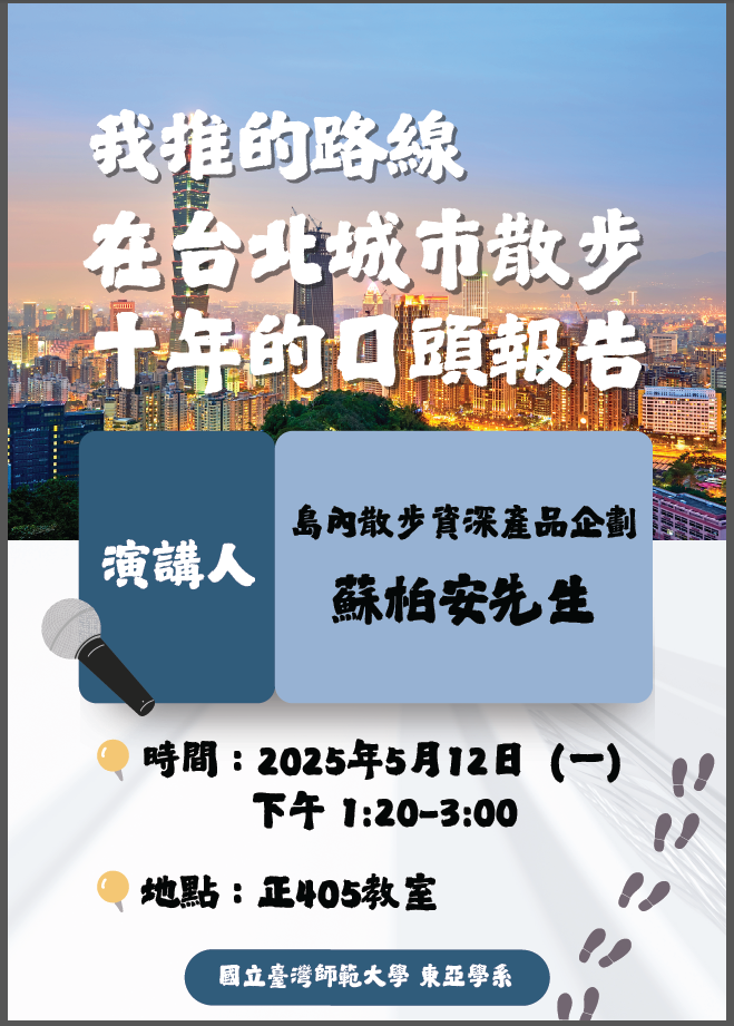 113-2「東亞現代化城市發展」專題演講---《我推的路線 ─ 在台北城市散步十年的口頭報告》
