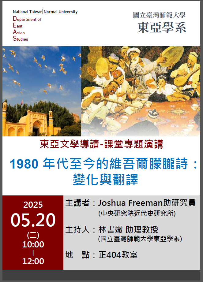 113-2「東亞文學導讀」專題演講---《1980 年代至今的維吾爾朦朧詩:變化與翻譯》